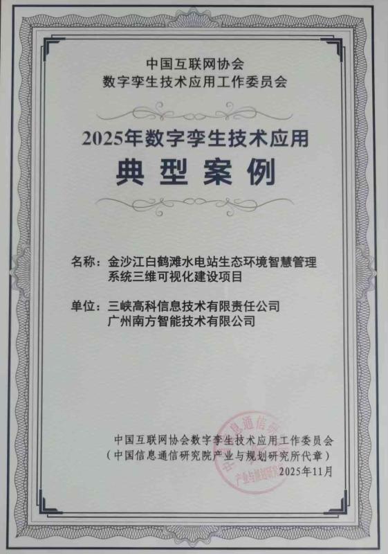 近日,在第二届数字孪生技术与产业发展大会上,三峡高科联合广州南方智能技术有限公司打造的金沙江白鹤滩水电站生态环境智慧管理系统三维可视化建设项目,成功入选“2025年数字孪生技术应用十大典型案例”。