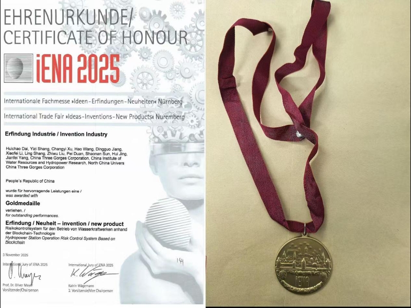 ▲ “一种基于区块链技术的水电站运行风险管控系统”获奖证书及金牌