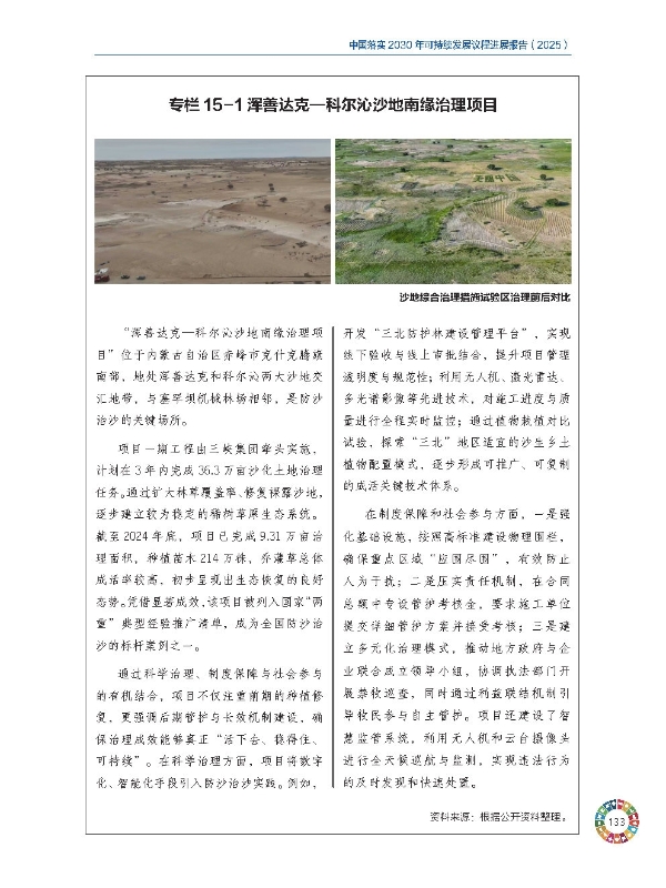 本网讯(曹皓珺 胡金)近日,由中国国际发展知识中心撰写的《中国落实2030年可持续发展议程进展报告2025》在浙江省湖州市发布,三峡集团《浑善达克—科尔沁沙地南缘治理项目》案例入选。这是三峡集团案例第四次入选该报告,体现三峡集团在生态治理和清洁能源国际合作方面的持续实践与积极成效。