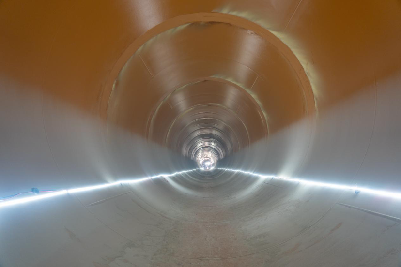 ▲引水中平洞焊接完成的1000兆帕压力钢管内部 三峡建工供图